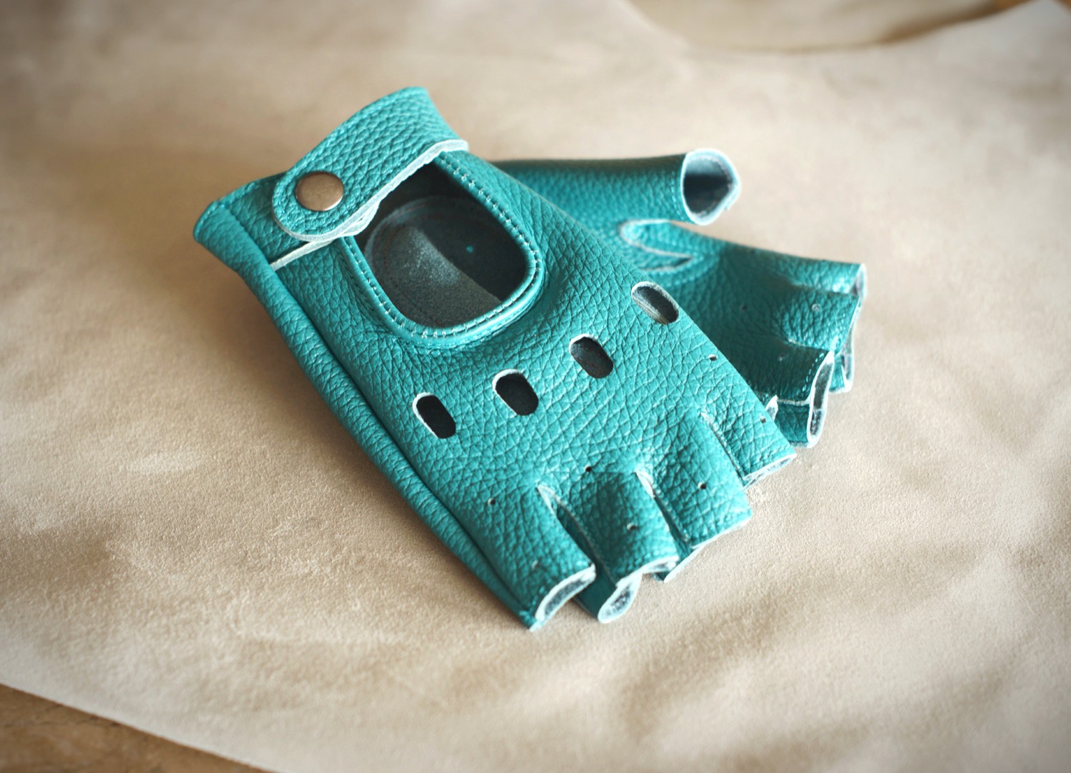 ✦ Szczegóły — Materiał: naturalna skóra jelenia — Kolor: zielony — Styl: bez palców, zapięcie na pasek — Podszewka: bez podszewki — Produkcja ręczna, Świdnica, Polska — Skóra pochodząca z europejskich garbarni — Gwarancja: 24 miesiące
